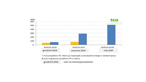 Overall, out of the 2 auctions, 127 MW equal to 36% of the 870 MW PV capacity awarded has come online, according to the IEO report Photovoltaic Market in Poland 2019. Projects awarded in the November 2018 auction, a little over 500 MW, have time till May 2020 to come online. The full report is scheduled to be published at the beginning of June 2019.