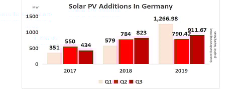 After two consecutive months of adding over 300 MW of new solar power capacity, Germany installed 286.9 MW in the month of September 2019 with rooftop solar additions during the reporting month accounting for over 260 MW.