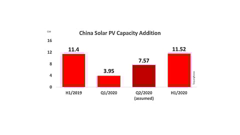 Though NEA does not specify Individual capacity addition for Q1 and Q2, one can expect Q2/2020 additions to be around 7.57 GW since it stated 3.95 GW as the newly installed capacity during Q1/2020 (see China Installed 3.95 GW New Solar In Q1/2020). This goes on to show that China was able to overcome the impact it felt due to COVID-19 related lockdowns in the first quarter.
