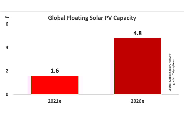 At the end of 2021, global floating solar panel deployment totaled an estimated 1.6 GW, and is projected to reach 4.8 GW by 2026 led by Asia Pacific, according to analysts with the US based market research company Global Industry Analysts (GIA) Inc.