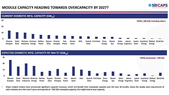 Overall, the SBICAPS report sees vertically integrated Indian solar players as better placed than their global peers over the medium term, thanks to their ability to manage costs better and benefit from tight cell supply-demand conditions. Standalone module makers may face more variable returns, leading many to diversify into areas like inverters, IPPs, and battery storage.