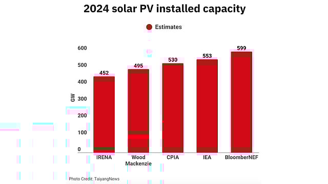 The global solar PV installation estimate for 2024 by various analysts varies widely