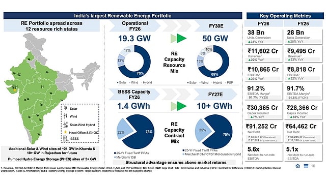 During FY 2026, AGEL added 5.1 GW of greenfield capacity, 35% higher than the previous year, expanding its cumulative operational capacity to 19.3 GW. “This is the highest greenfield annual capacity extension globally by any company outside China,” said AGEL CEO Ashish Khanna. AGEL targets 50 GW of capacity by 2030.