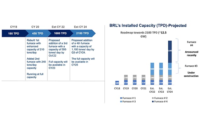 Borosil was producing 49 tons per day (TPD) on an average basis during FY2022 for an annual production capacity of 450 TPD, and selling entire output. As per its expansion plans, it expects to add a 3rd furnace to expand solar glass production capacity by 550 TPD by October 2022 which will expand its total annual capacity to 1,000 TPD.