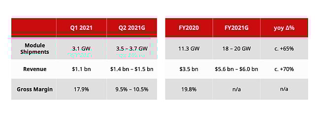 "Solar glass prices are not only back to normal, but right now they're below the pre-inflationary phase. Unfortunately, this was more than offset by polysilicon prices, which have tripled over the past 12 months," explained Zhuang on a call with analysts while sharing the company's Q1/2021 financial results. "This is very unusual as we can see that the total polysilicon supply in the market is more than enough to satisfy end market demand. The problem is that, well over 200 GW of wafer and cell capacity are competing for less than 200 GW of polysilicon supply. Meanwhile, we are seeing greater speculative polysilicon treating activities by intermediaries, which is also contributing to the higher polysilicon price."