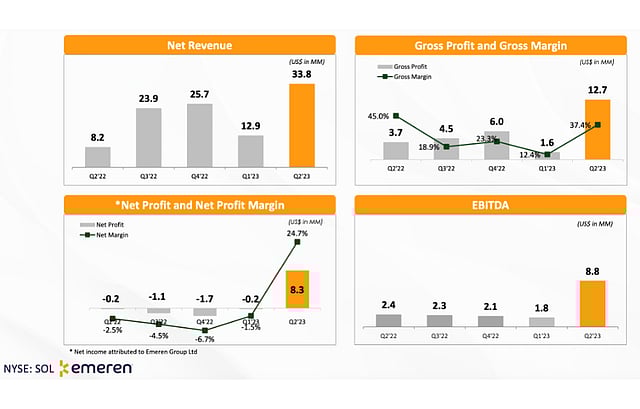 Solar power project developer and operator Emeren Group exited Q2/2023 with $33.8 million in revenues reflecting 312% growth YoY and 163% QoQ, thanks to strong project sales in Europe and its IPP assets; however, it was unable to achieve the revenue target of $38 million to $40 million.