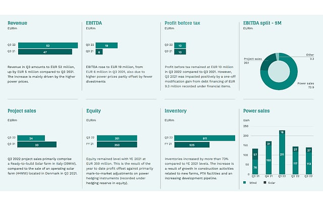 Danish renewable energy developer European Energy A/S has had a good run with its financials during 9M/2022 with its EBITDA growing by €78.1 million YoY to €96.2 million, with Q3/2022 contributing €19.2 million, and a development pipeline of 25 GW. These numbers give it confidence to exit 2022 as 'another solid year'.