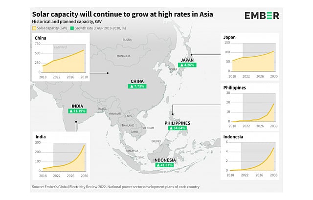In the coming years, Asia's 5 biggest economies namely China, Japan, Indonesia, India and the Philippines are expected to experience exponential solar power growth with the fastest growth anticipated in Indonesia and the Philippines, says climate and energy think tank Ember.