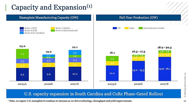 In 2026, it expects the US factories to produce 13 GW to 13.3 GW out of its global total of 16.5 GW to 17.5 GW, while rolling out 14.9 GW to 16.1 GW in the US out of the 18.9 GW to 20.5 GW it plans for 2027. The Indian factory is expected to operate at high production levels, adjusting its output according to local demand and export opportunities.