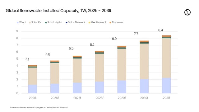 GlobalData forecasts global installed renewable capacity to expand from 4.1 TW in 2025 to 8.4 TW by 2031, representing a 13% CAGR