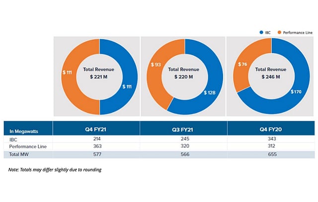 The distributed generation (DG) segment continues to be the revenue generator for Maxeon as in Q4/2021, it earned $184 million for the company. The large scale projects segment brought in $38 million with EMEA being its largest market followed by APC and the Americas. Among shipments in Q4/2021, it sold 363 MW Performance Line modules and 214 MW IBC panels.