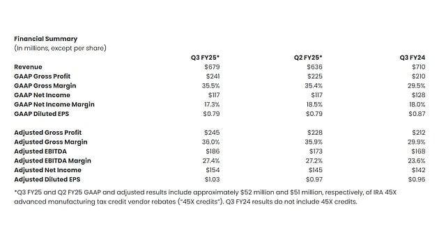 The company’s revenues reached $679 million for the quarter, up 6% from Q2 2025, with a 66/34 split between US and international markets. The company states that its growth stems from strong demand, efficient execution, and stable pricing.