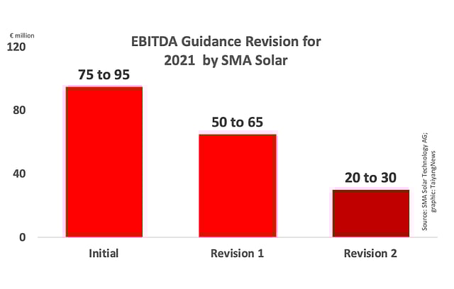 SMA Solar Technology AG, the German solar PV inverter manufacturer, has once again adjusted its EBITDA guidance for 2021, bringing it down from €50 million to €65 million to now €20 million and €30 million, citing trouble in an existing O&M service contract.