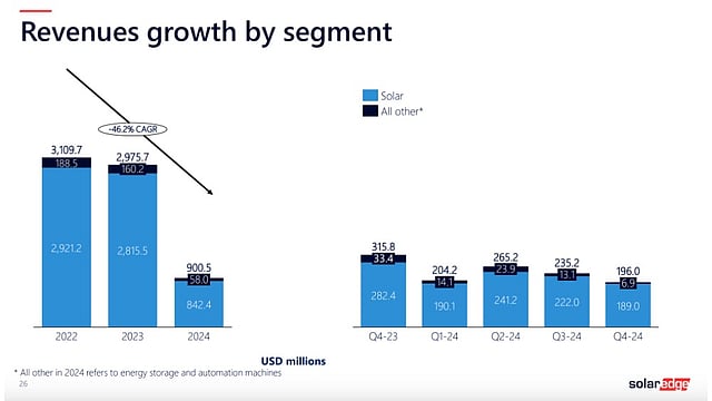 For FY2024, its total revenues of $901.5 million represented an annual decline of more than $2 billion from $2.98 billion in 2023, driven by solar business whose revenues dropped from $2.82 billion to $842.4 million.