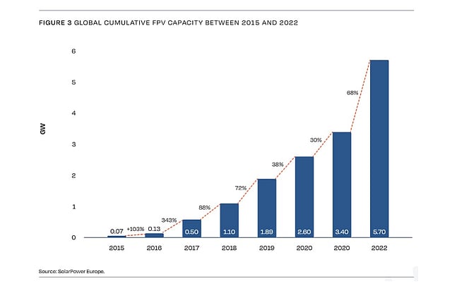 According to the report, at the end of 2022, the world had installed a total of 5.7 GW of cumulative floating PV capacity, having grown by 2.3 GW in 2022 alone. China remains the largest market for this technology, accounting for almost 70% of the global aggregate, followed by Japan, Korea and Europe.