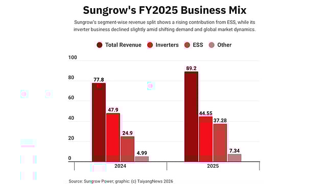 Sungrow Power, the tier-I global solar PV inverter and energy storage system (ESS) provider, reported steady financial growth in FY2025, with total revenue up 14.55% annually to RMB 89.2 billion.