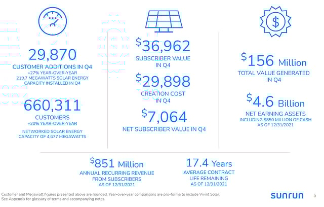 "Additionally, the inflationary pressures seen across the economy are increasing traditional power rates in many areas, providing us more headroom to increase our prices as well, while still delivering a strong customer value proposition," shared Sunrun CFO Tom vonReichbauer. "We are entering 2022 with a record backlog of orders and are working hard to install systems for our customers as quickly as possible."
