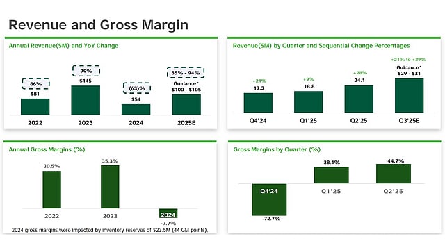 The company reported a positive adjusted EBITDA of $1.1 million for the quarter, compared to a loss of $6.4 million in Q2 2024 and a loss of $2 million in Q1 2025. The company also managed to narrow its net loss to $4.4 million, compared to a net loss of $11.3 million a year ago. It shipped 646,000 units or 477 MW of MLPE.