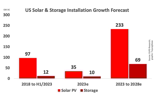 The EUPD Research of Germany forecasts the US to install 233 GW DC of new solar PV capacity between 2023 and 2028, thanks mainly to the enactment of the Inflation Reduction Act (IRA). Close to 70 GW DC of this capacity will come from distributed solar.
