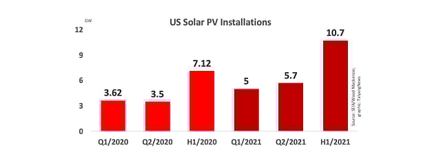 The US solar market wasn't immune to the global increase in prices that for the utility scale segment increased at about 6% annually during Q2/2021, according to the Solar Energy Industries Association (SEIA) and Wood Mackenzie. While the analysts see solar developers having sufficient inventory for their projects in 2021, there will be price increases in 2022.