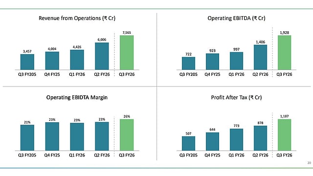 Waaree Energies Limited has reported its highest-ever quarterly revenue of INR 75.65 billion for Q3 FY2026 (ended December 2025), representing an increase of 118.81% year-over-year (YoY).