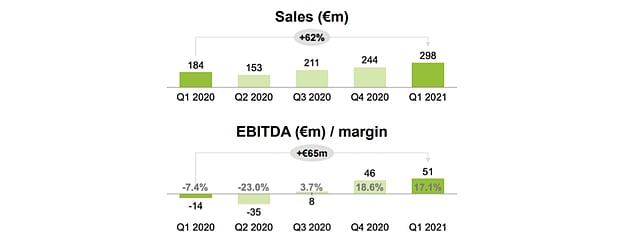 EBITDA margin for the quarter was 17.1%, after -7.4% in Q1/2020, and 18.6% in Q4/2020.