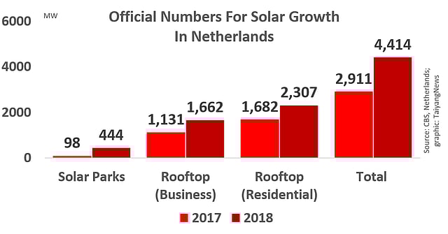 Previously shared individual and industry estimates for the 2018 numbers for Netherlands varied between 1.3 GW to 1.5 GW (see Netherlands Installed 1.33 GW Solar In 2018).