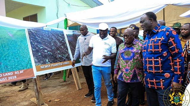 Ghana's President Nana Addo Dankwa Akufo-Addo officially commissioned a 20 MW solar power project in Gomoa Onyaadze on September 16, 2018. It was constructed and will be operated by Meinergy Ghana Ltd. that used 64,400 solar panels, 400 smart inverters and laid 15,000 DC cables for it.