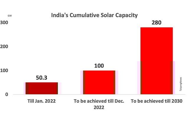 India has a target to install 100 GW solar capacity by December 31, 2022 and scale it up to 280 GW by 2030.