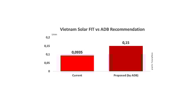 The Asian Development Bank (ADB) believes Vietnam's government should revise its feed-in-tariff (FIT) for renewable energy generation projects upwards, which would encourage investment from the private sector. For solar power, it suggests FIT of $0.15 per kWh.