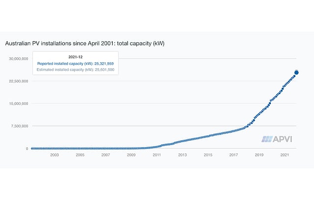 The Australian PV Institute (APVI) says, Australia's cumulative installed solar PV capacity went up to 25.3 GW by end of 2021 with the help of over 3.04 million installations. This would translate into 'more solar per capita than anywhere else in the world'.