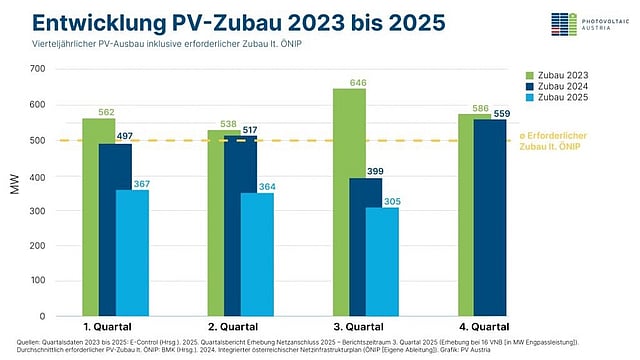 Between January and September 2025, Austria’s solar PV market expanded by 1.03 GW according to sector association Photovoltaic Austria (PV Austria). At this pace, the association believes, the country will miss meeting its annual target of 2 GW capacity as laid out in the Integrated Austrian Network Infrastructure Plan, or Österreich laut österreichischem Netzinfrastrukturplan (ÖNIP).