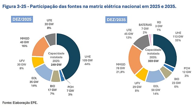 Under the draft Ten Year Energy Expansion Plan (PDE 2035), distributed solar grows from 40 GW to 78 GW, accounting for 22% of total installed capacity by the end of the period