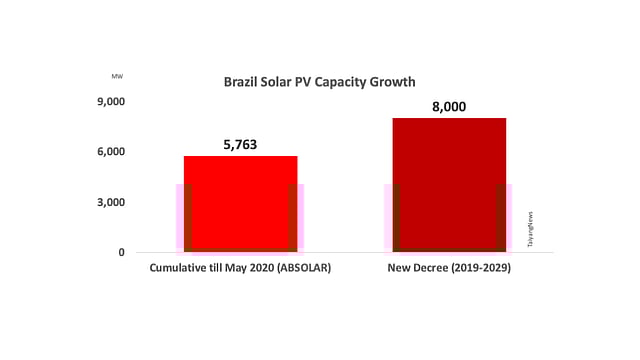 Over the next 10 years, Brazil may be looking at over 8 GW of new solar PV power plants, more than 25 GW of new wind power plants and new projects for small hydroelectric plants exceeding 3 GW capacity to come up in the country thanks to the government clearing Decree No. 10,387 on June 5, 2020.