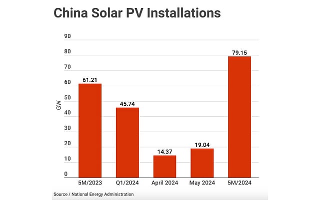 This means in the month of May 2024, China installed 19.04 GW new capacity after having installed close to 14.37 GW in the previous month. During 4M/2024, China's new PV additions totaled 60.11 GW.