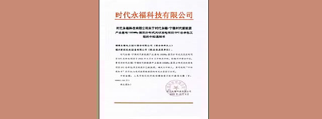 Yongfu Power wins 185 MWp rooftop distributed PV project bid: Integrated service provider of power and energy Fujian Yongfu Power Engineering has won the bid for the EPC project of Times Yongfu-Ningde Rooftop Distributed PV Power Generation Project. The project, which has a total installed capacity of 185 MWp, is divided into five EPC sub-projects and the bid amount is RMB 699 million ($108.6 million).