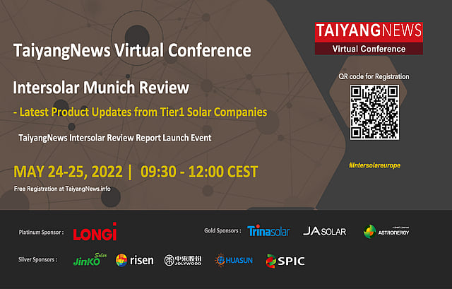 TaiyangNews Intersolar Munich Review Conference from May 24-25 2022: At a time, when solar power's significance is quickly increasing in the light of climate change and geostrategic challenges, one of the world's leading solar trade shows, Intersolar Europe 2022, took place in Munich, where the who-is-who of the solar industry was present and displayed their latest product updates. To reflect about the learnings from Intersolar Europe and to discuss the latest product innovations of Tier 1 companies, TaiyangNews will be organizing its first Intersolar Munich Review Virtual Conference from May 24-25 2022. For #FreeRegistration, please click here.