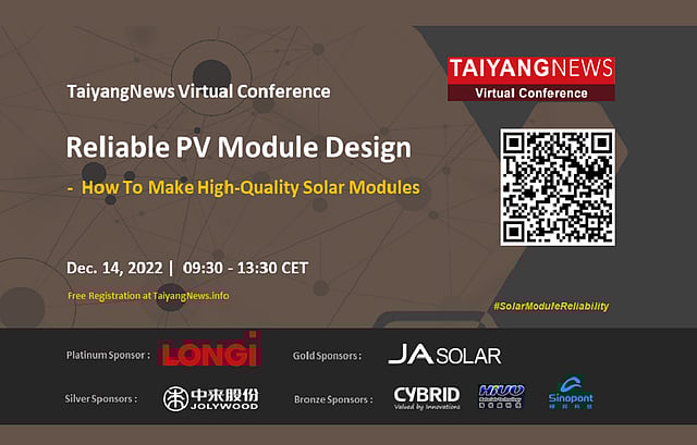 TaiyangNews Reliable PV Module Design Conference on 14 Dec: TaiyangNews is excited to announce its Virtual Conference on Reliable PV Module Design. The TaiyangNews Top Module Efficiency Ranking released every month has shown lot of changes – higher efficient, more powerful and larger size panels, that are increasingly based on new cell technologies. And as global demand for solar quickly grows, so does the number of module suppliers. But what about product reliability in this quickly changing solar world? This Conference will take a close look at the topic, bringing together stakeholders from different parts of the module manufacturing chain to discuss the latest findings on how to make high-quality solar panels that stand the test of time. Join us. For Free Registration, please click here.