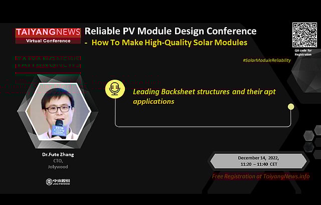Jolywood at TaiyangNews Reliable PV Module Design Virtual Conference: The world's largest solar backsheet manufacturer Jolywood's CTO Dr Fute Zhang will be taking part in the TaiyangNews Reliable PV Module Design Virtual Conference on 14 December 2022. He will be speaking on the topic: Leading Backsheet Structures and Their Apt Applications. The Conference will bring together stakeholders from different parts of the module manufacturing chain to discuss the latest findings on how to make high-quality solar panels that stand the test of time. Registrations are for free. For complete Agenda, click here. For free registration, click here.