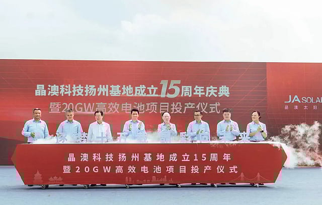 JA Solar celebrates 15th Anniversary at Yangzhou base; Yancheng Gaoce Jianhu Phase II operational; BAJ Solar's Yangzhou facility starts operations; POPSOLAR and Sanfu Tech sign strategic cooperation agreement; Tongwei cancels RMB 16 billion private placement.