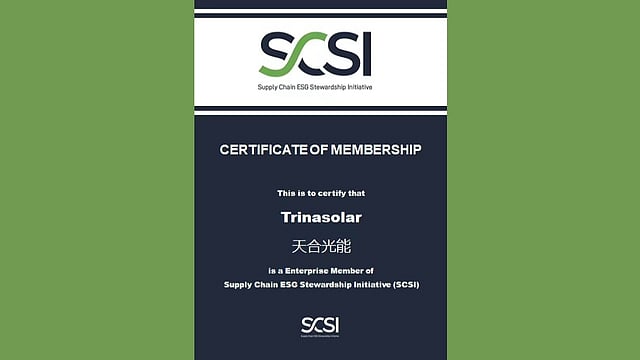 Integrated solar PV and energy storage systems manufacturer Trinasolar has officially joined the Supply Chain ESG Stewardship Initiative (SCSI) as a corporate member. The company stated that it integrates ESG principles into all aspects of its strategy and operations. Trinasolar added that it will leverage the SCSI platform to collaborate with fellow members in exploring innovative ESG practices and leading standards, aiming to promote the integrated advancement of ESG performance and product/service innovation across the supply chain.