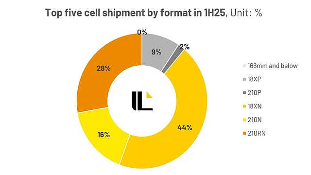 According to InfoLink, the combined shipments of the top 5 reached 87.8 GW globally in H1 2025, up about 12.5% year-on-year. TOPCon cells accounted for 88.3% of the total, PERC 11.2%, and BC cells less than 1%.