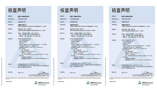 Tongwei emphasized that it is the first PV manufacturer in China to complete a full life-cycle product water footprint verification.