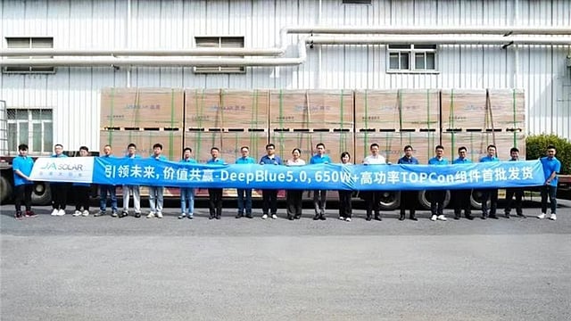 Global Solar PV manufacturer JA Solar has announced the first shipment of its DeepBlue 5.0 n-type TOPCon modules from its fully automated production base in Yangzhou, Jiangsu Province. The DeepBlue 5.0 is the company’s new flagship high-efficiency module series, built on its proprietary Bycium+ 5.0 n-type cell technology and advanced TOPCon architecture. The module is rated for a power output of up to 650 W at a conversion efficiency of 24.07%.