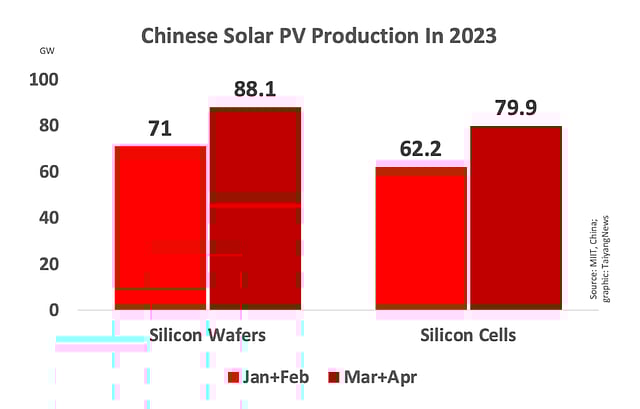 Overall, China's national output of polysilicon, wafers, cells and modules improved by more than 72% YoY.