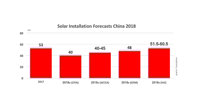 Yet, it is in line with Asia Europe Clean Energy (Solar) Advisory Co. Ltd.(AECEA), a China based consultancy, that believes changes in the incentive scheme is likely to bring down the country's PV installations to 40-45 GW in 2018. GTM Research forecasts 48 GW of new PV capacity in 2018 (see GTM Pegs 2018 PV Demand At 104 GW).