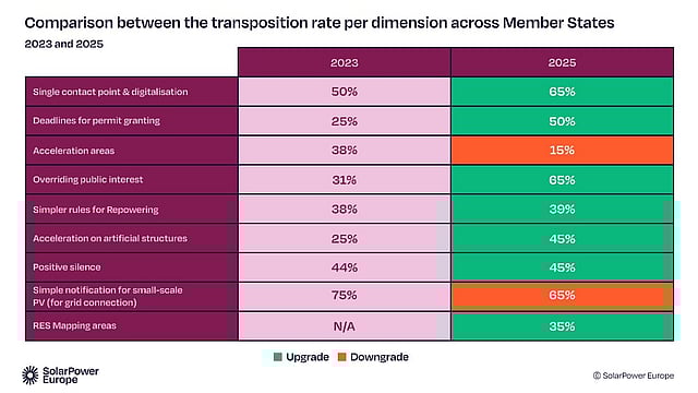 European Union (EU) member countries have transposed less than 50% of the key renewable energy permitting reforms into national laws, according to a new report by SolarPower Europe (SPE), which assesses the progress across 20 Member States on 8 permitting and planning measures.