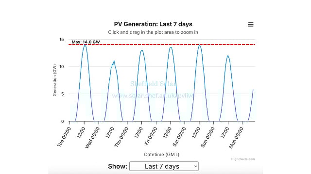 Solar generation hits record: The University of Sheffield’s modeling shows that the UK saw its peak solar generation hitting a record 14 GW, lasting a half-hour period and ending at 12:30 p.m. on July 8, 2025. According to Solar Energy UK, solar PV supplied 39% of the national power demand at the time. It beat the previous record of 13.8 GW set on April 6, 2025. “Maximum instantaneous generation is normally encountered in the middle of a spring day, when bright sunlight coincides with cooler conditions. But the pace of the solar energy sector’s expansion, combined with sunny weather, has upturned this assumption,” stated Solar Energy UK, which expects the country to have an installed solar PV capacity exceeding 21.5 GW.