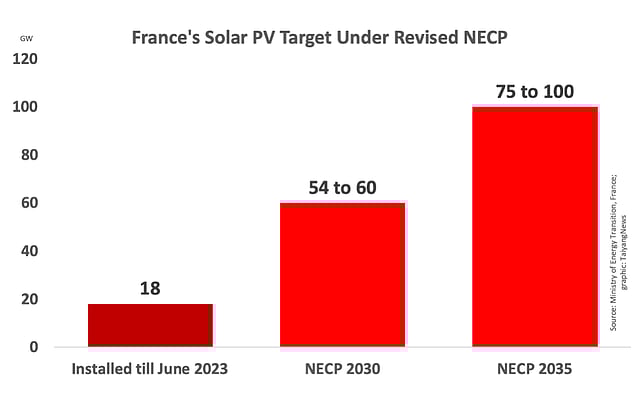 The French government has revised its solar PV installation target under its draft National Energy and Climate Plan (NECP) to aim for up to 75 GW to 100 GW by 2035, while achieving 54 GW to 60 GW by 2030. It would entail grid connecting 7 GW of PV capacity every year. The draft is now open for public consultation.