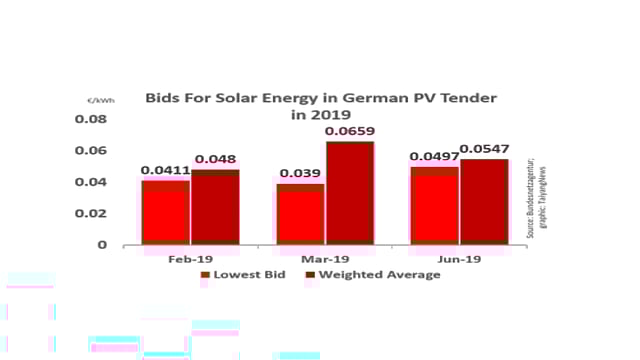 In the 3rd solar PV tender for 2019 by Germany's Federal Network Agency (Bundesnetzagentur) a total of 14 projects were awarded 204.69 MW capacity, which is much higher than the 150 MW originally tendered. The tender was totally oversubscribed – it received 105 bids for more than 556 MW capacity. Oversubscription was due to a bid for a very large plant, Bundesnetzagentur said.
